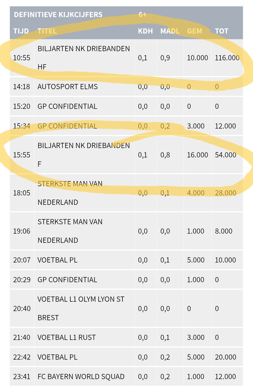 Voor de toekomst van biljarten op tv zijn dit soort goede cijfers cruciaal. En eigenlijk ook voor ons, om ook in de toekomst vol vertrouwen weer nieuwe ‘Superweekends’ te kunnen uitroepen. :)